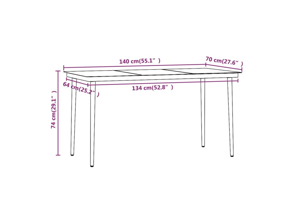 - Rozměry stolu: 140 x 70 x 74 cm (D x Š x V)