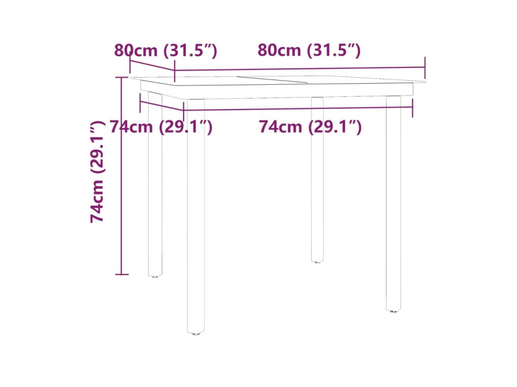 - Rozměry stolu: 80 x 80 x 74 cm (D x Š x V)