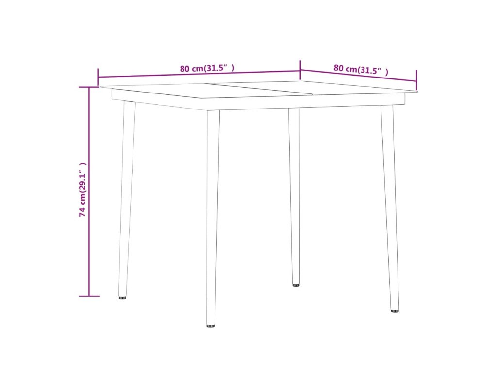 - Rozměry stolu: 80 x 80 x 74 cm (D x Š x V)