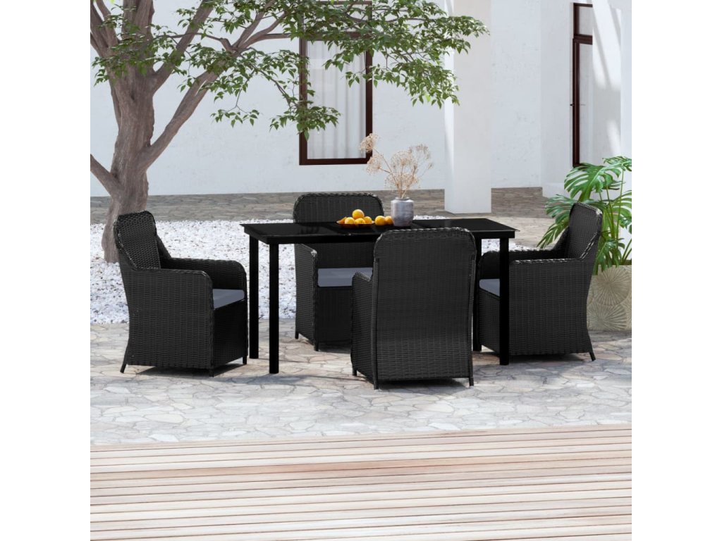 5dílný zahradní jídelní set s poduškami černý 3099531