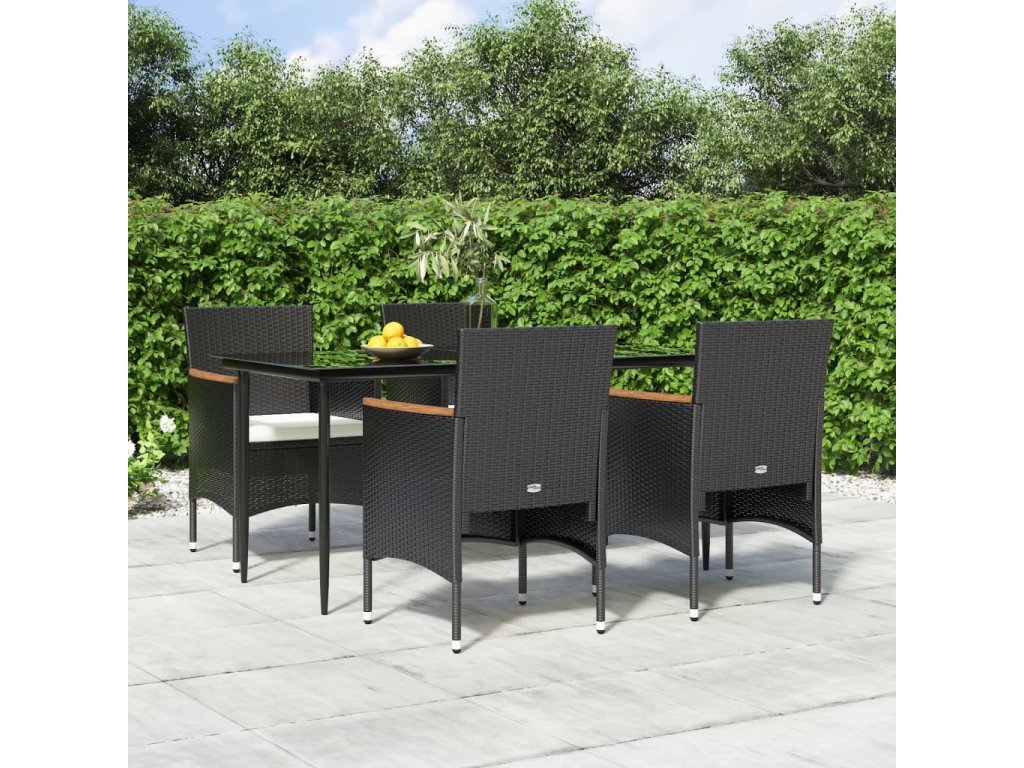 5dílný zahradní jídelní set s poduškami černý 3156640