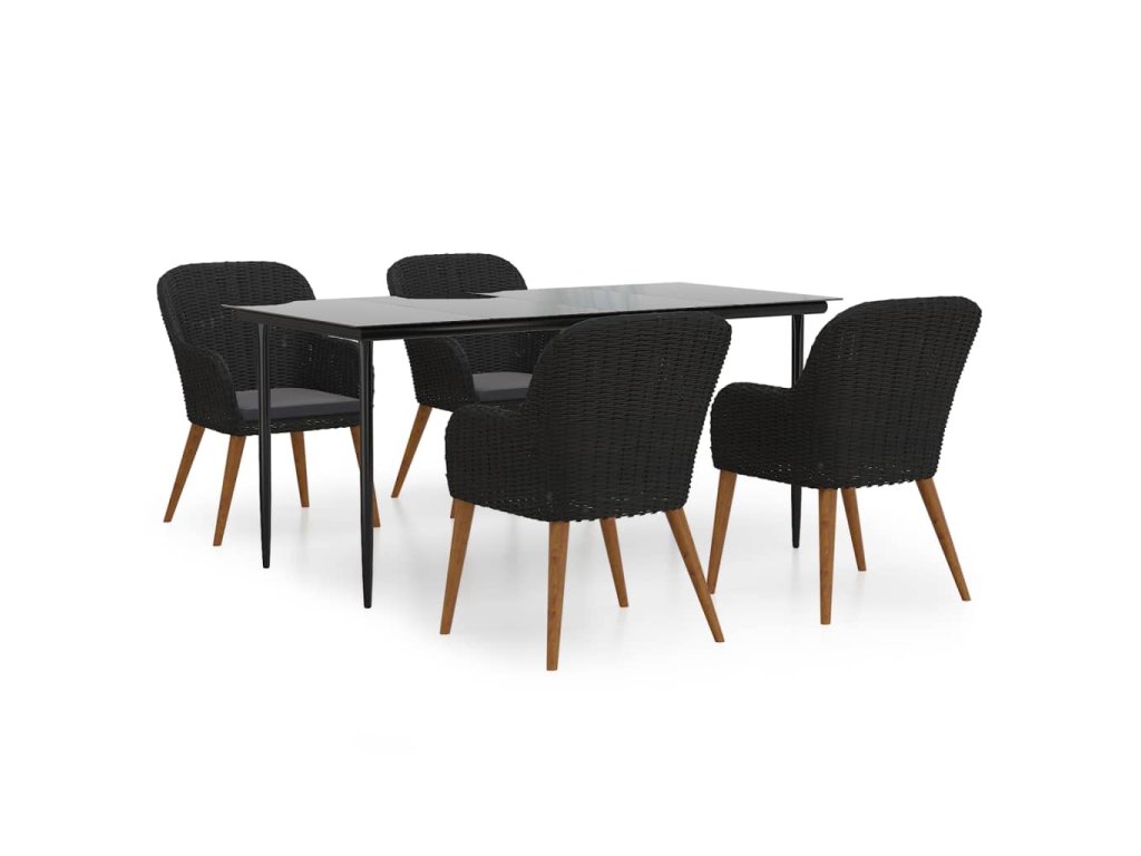 5dílný zahradní jídelní set s poduškami černý 3156726