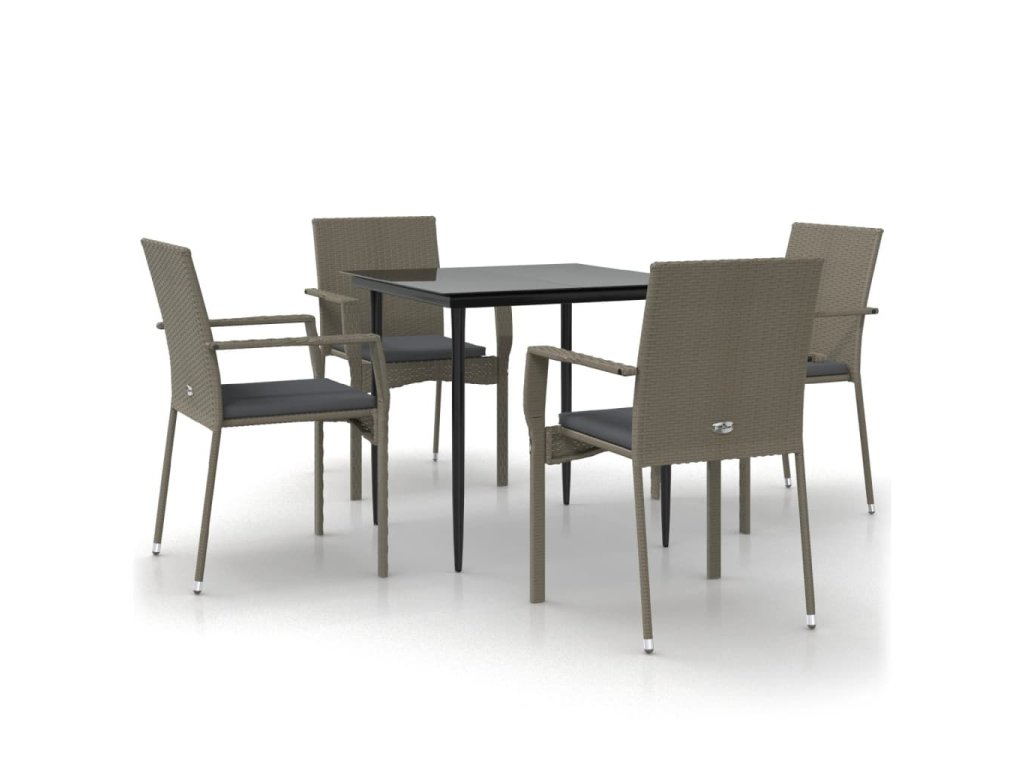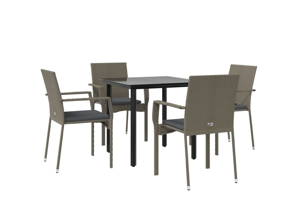 5dílný zahradní jídelní set s poduškami černý a šedý polyratan 3185126