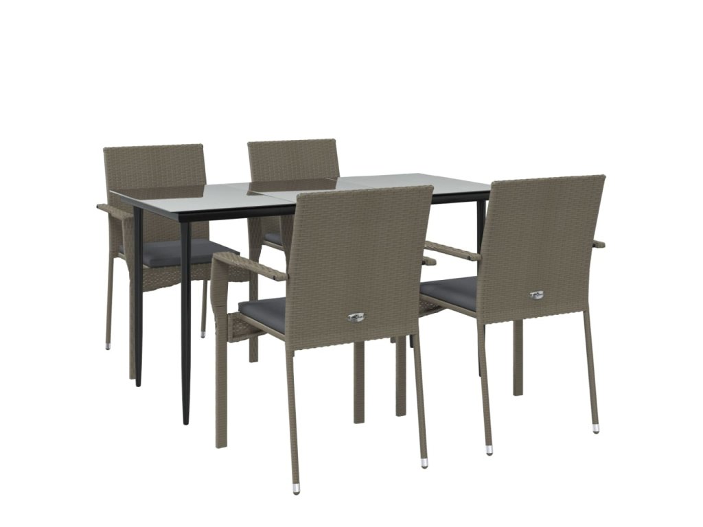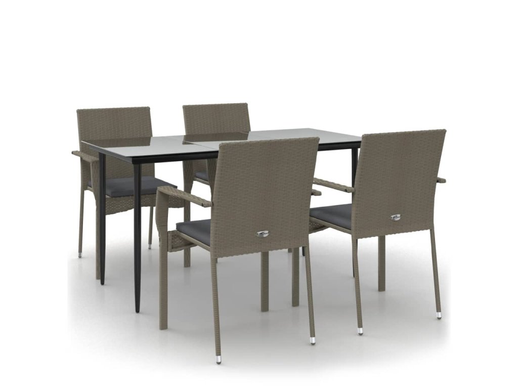 5dílný zahradní jídelní set s poduškami černý a šedý polyratan 3185127