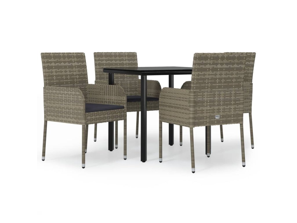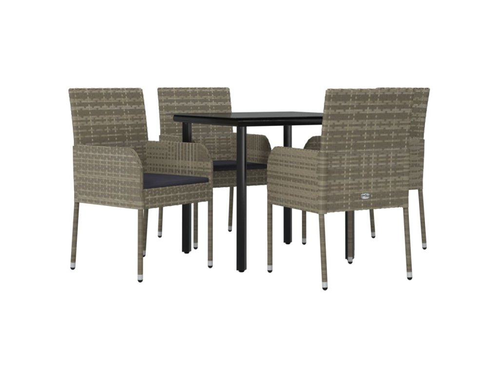 5dílný zahradní jídelní set s poduškami černý a šedý polyratan 3185162