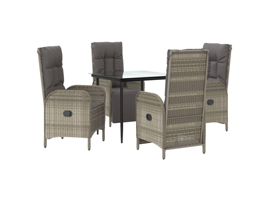 5dílný zahradní jídelní set s poduškami černý a šedý polyratan 3185185