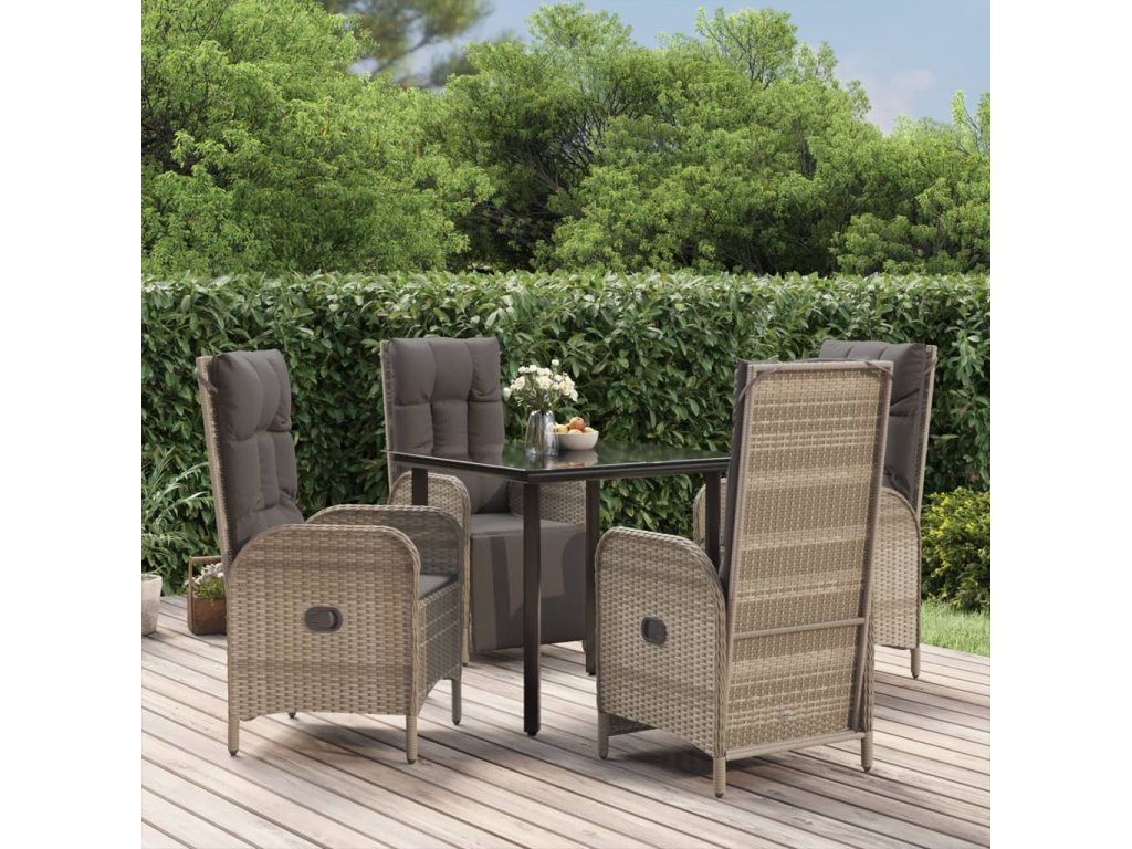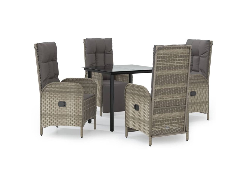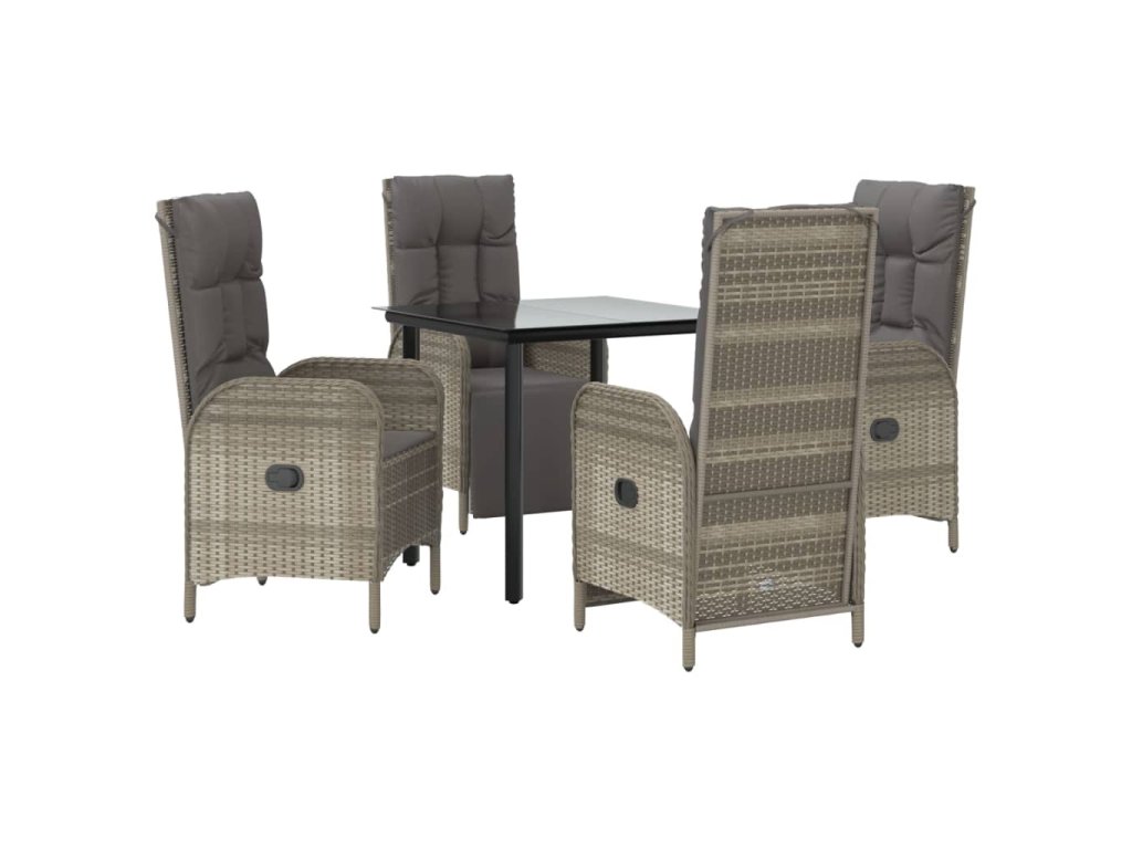 5dílný zahradní jídelní set s poduškami černý a šedý polyratan 3185205