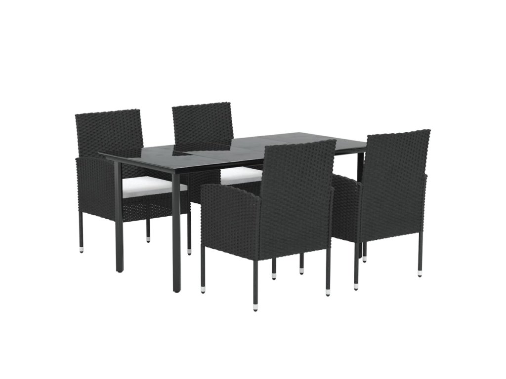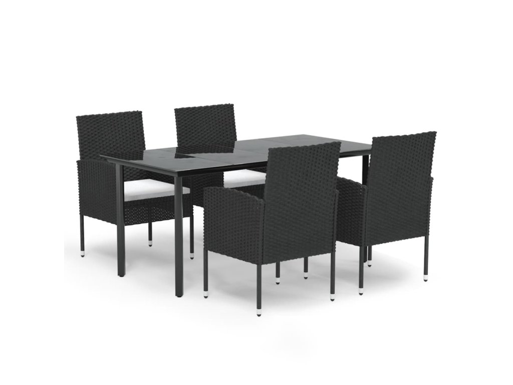 5dílný zahradní jídelní set s poduškami černý polyratan 3156766