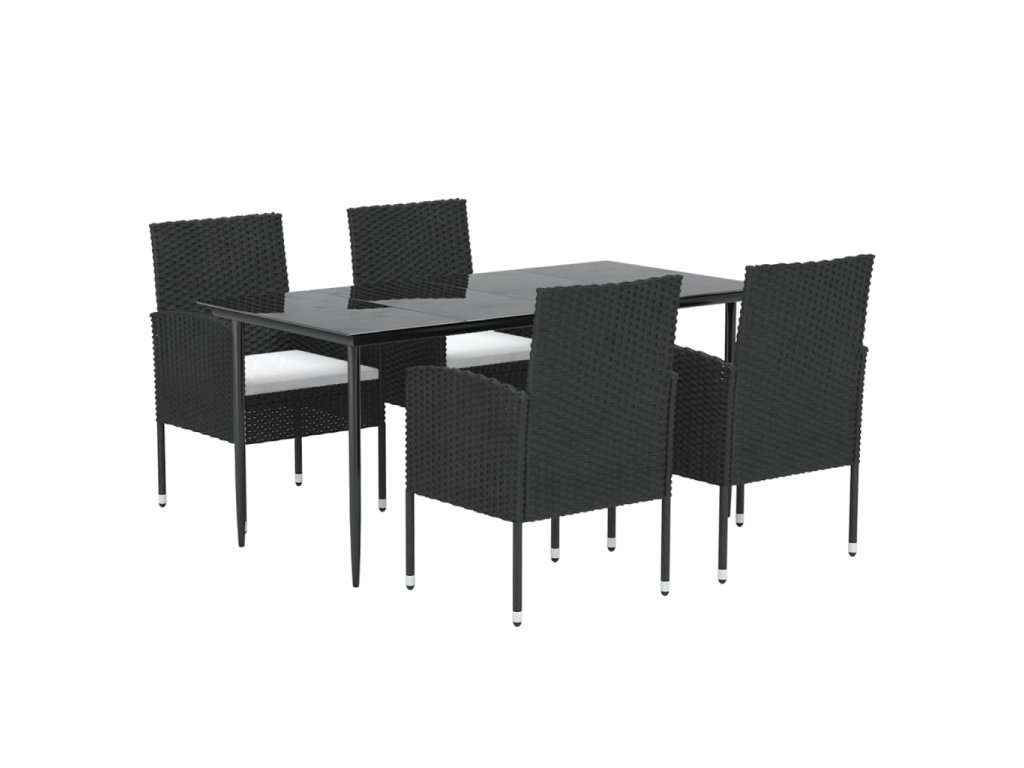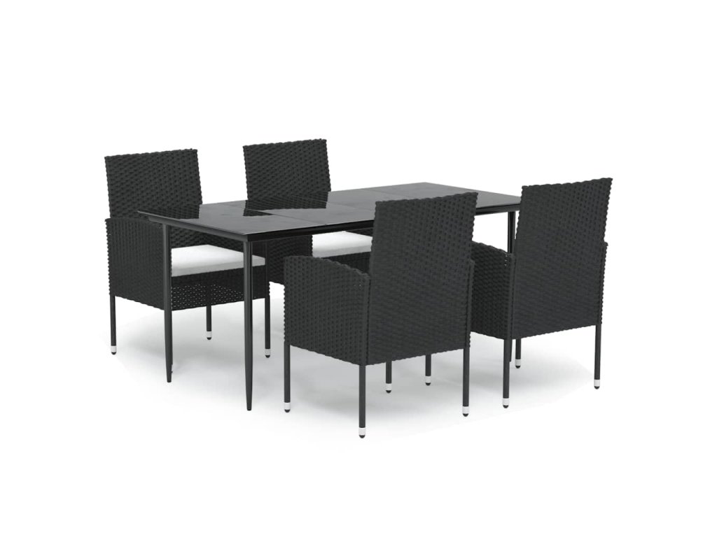 5dílný zahradní jídelní set s poduškami černý polyratan 3156778