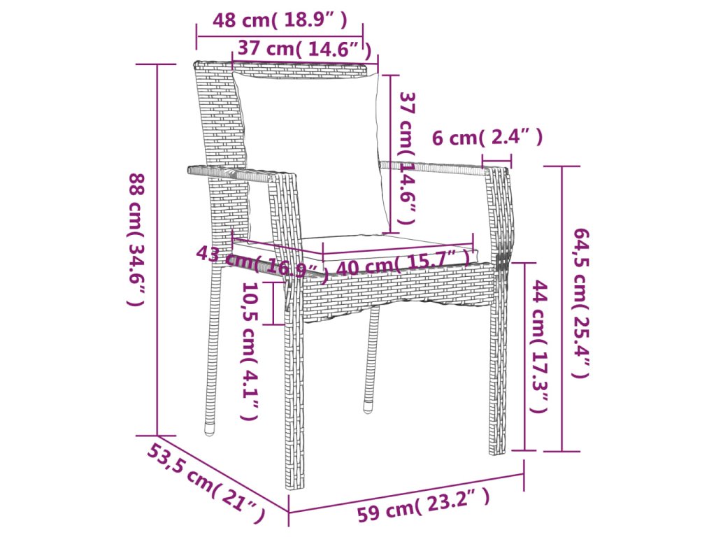 - Pohodlné sezení: Opěradlo zvyšuje pohodlí při sezení na zahradní židli. Silně polstrované podušky poskytují extra pohodlí.