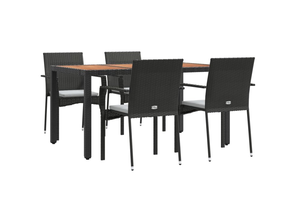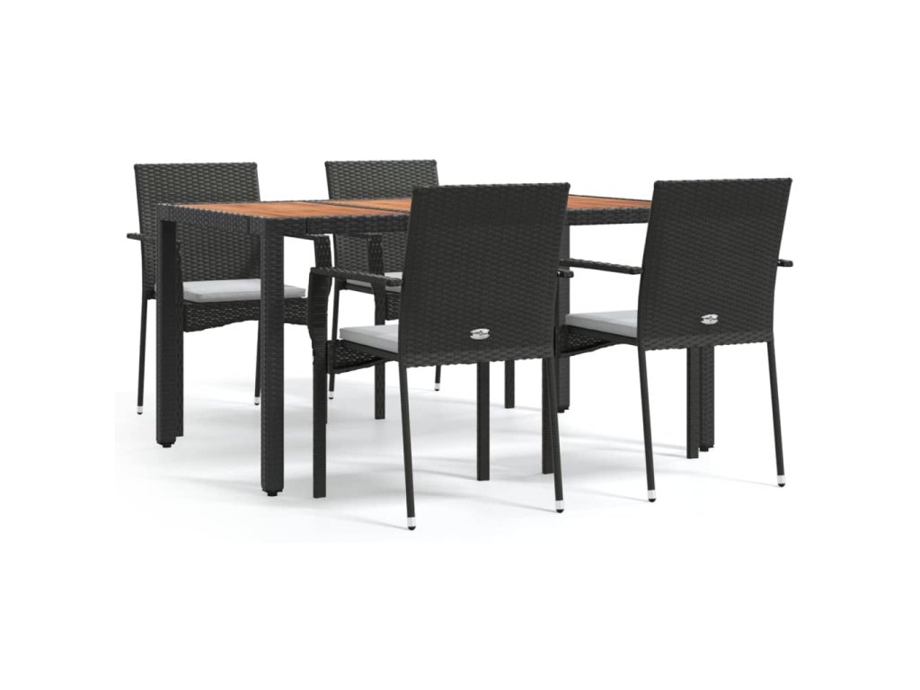 5dílný zahradní jídelní set s poduškami černý polyratan 3184989