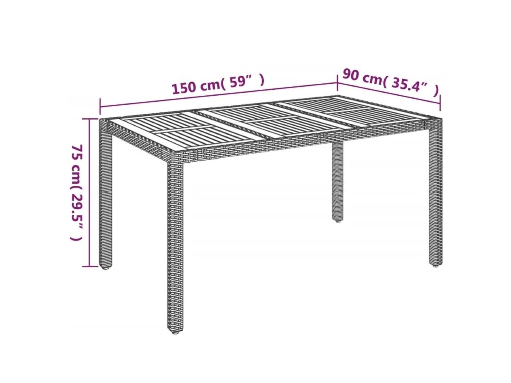 - Materiál: PE ratan, práškově lakovaná ocel, masivní akáciové dřevo s olejovou povrchovou úpravou
