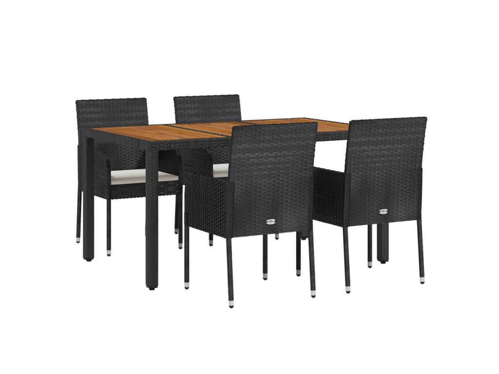5dílný zahradní jídelní set s poduškami černý polyratan 3185013
