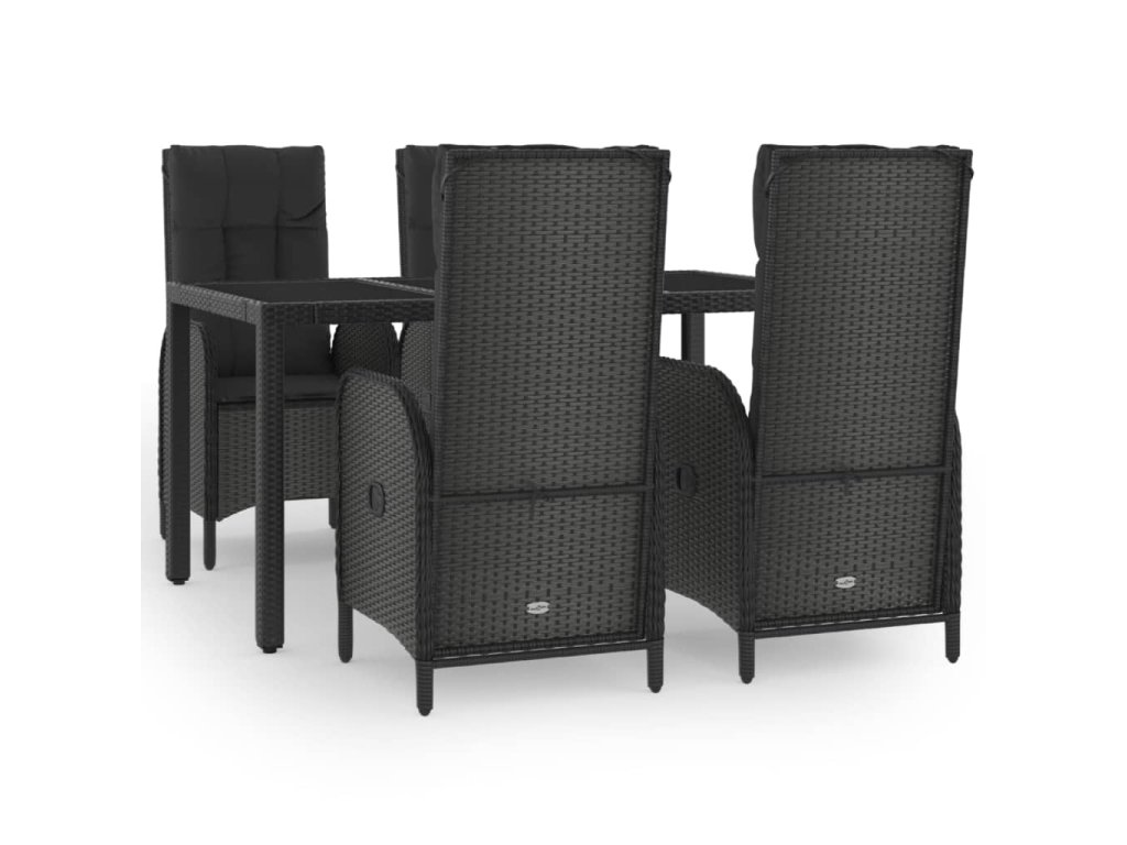 5dílný zahradní jídelní set s poduškami černý polyratan 3185055