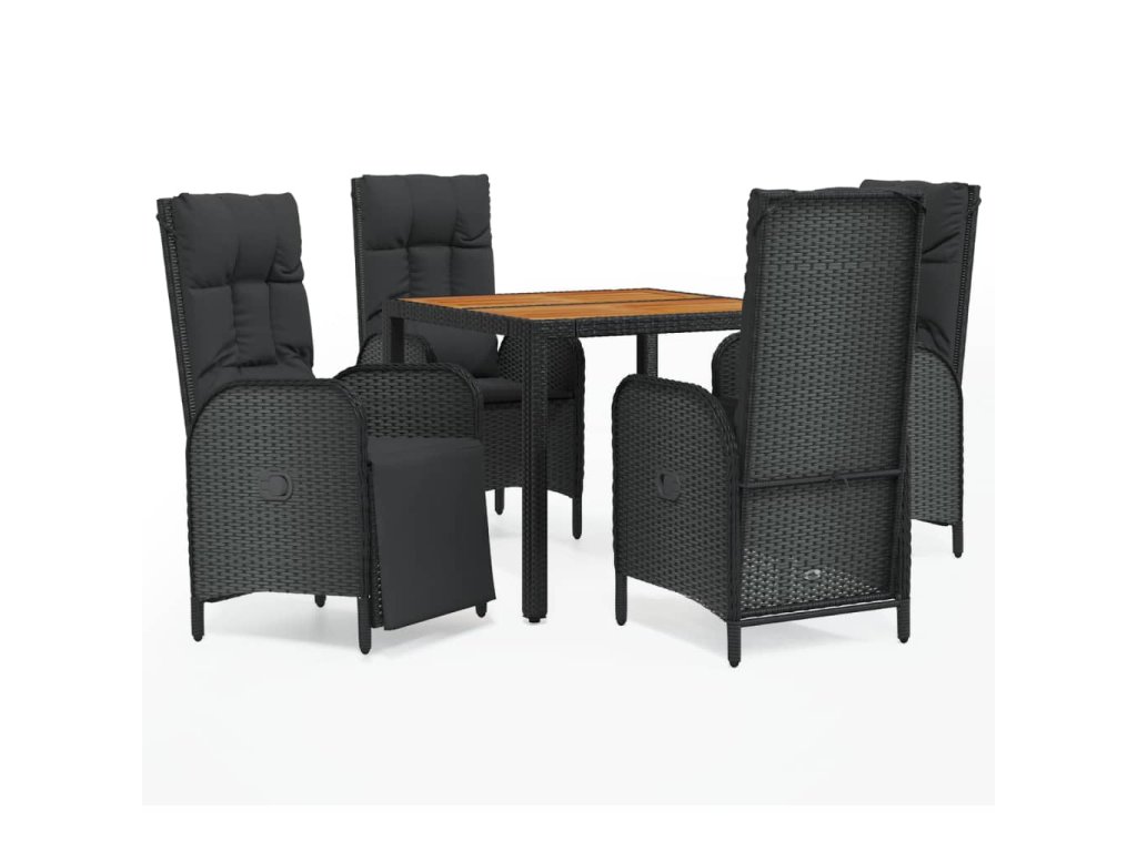 5dílný zahradní jídelní set s poduškami černý polyratan 3185080