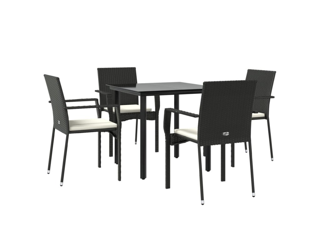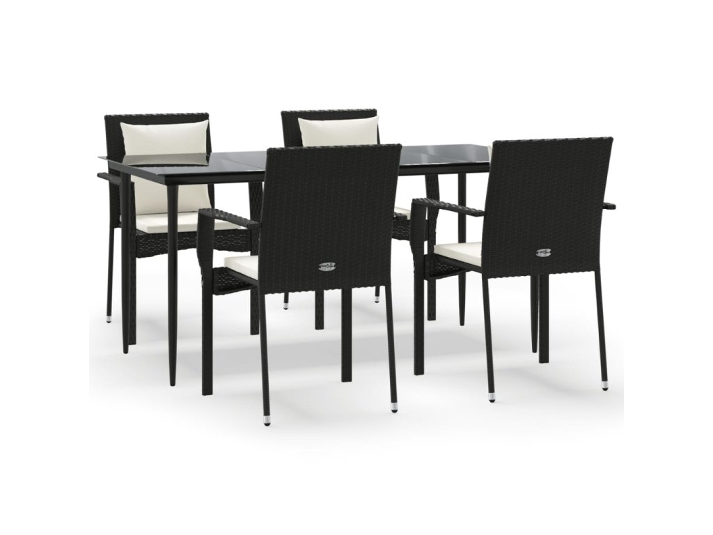 5dílný zahradní jídelní set s poduškami černý polyratan 3185098