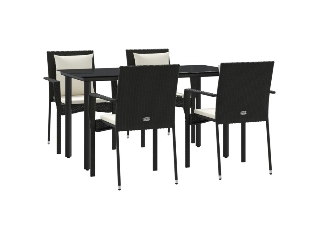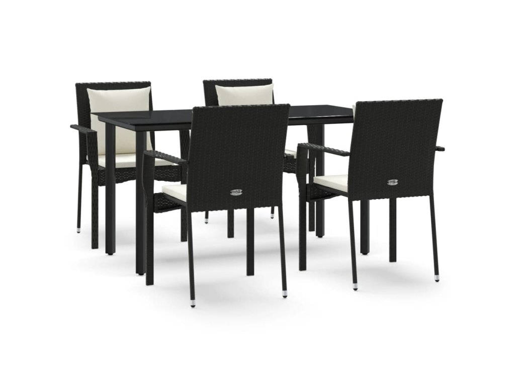 5dílný zahradní jídelní set s poduškami černý polyratan 3185109