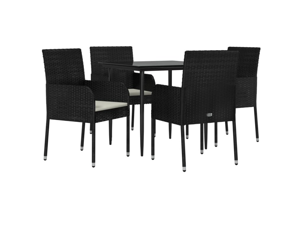 5dílný zahradní jídelní set s poduškami černý polyratan 3185144