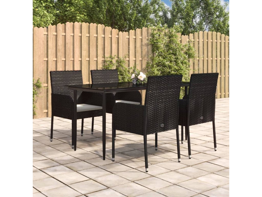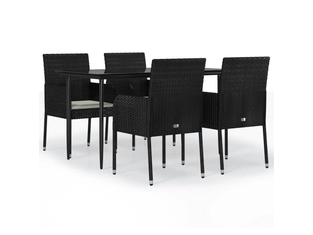 5dílný zahradní jídelní set s poduškami černý polyratan 3185145