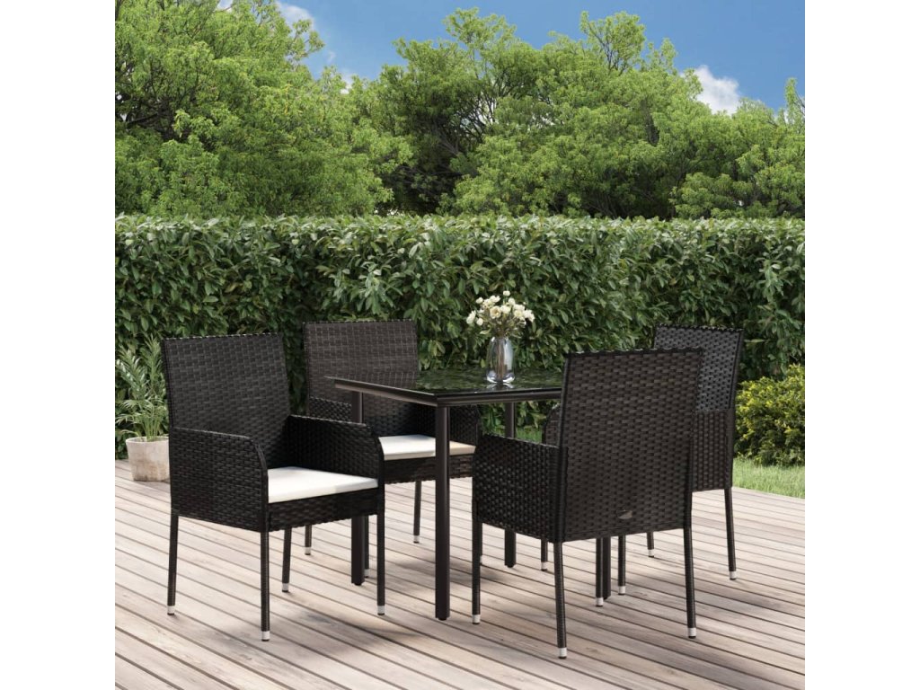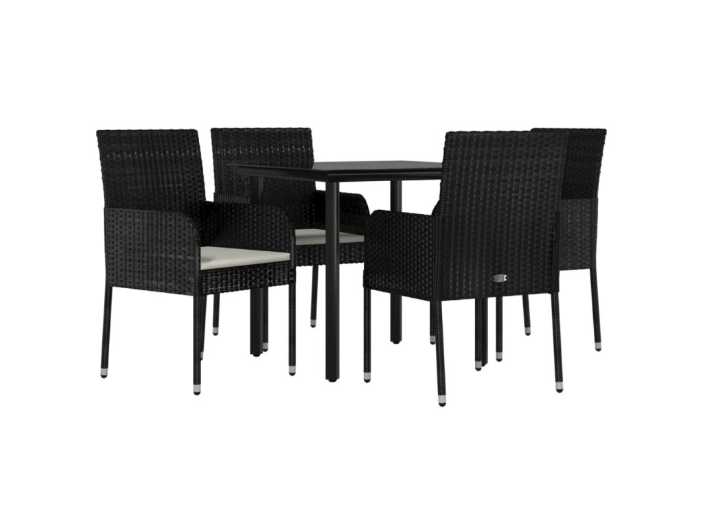 5dílný zahradní jídelní set s poduškami černý polyratan 3185156