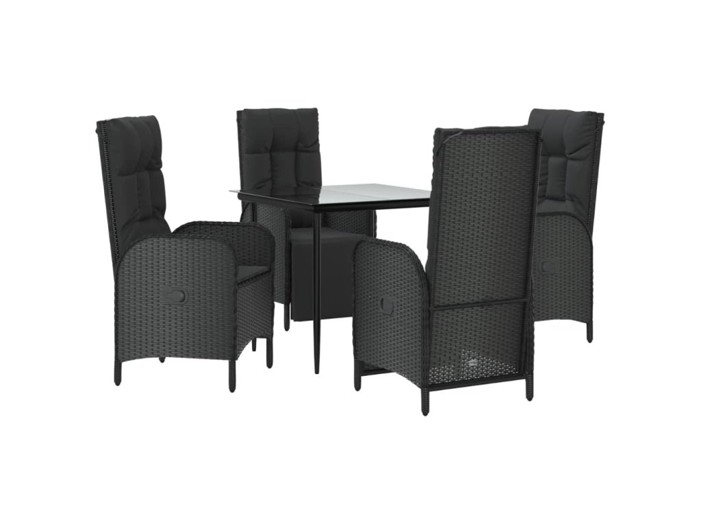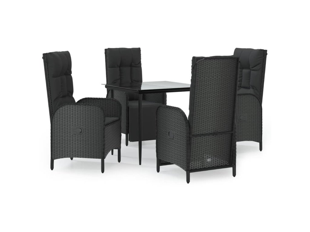 5dílný zahradní jídelní set s poduškami černý polyratan 3185175