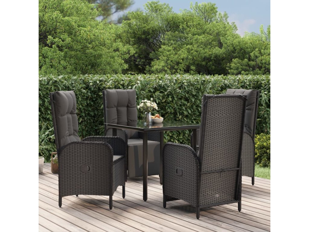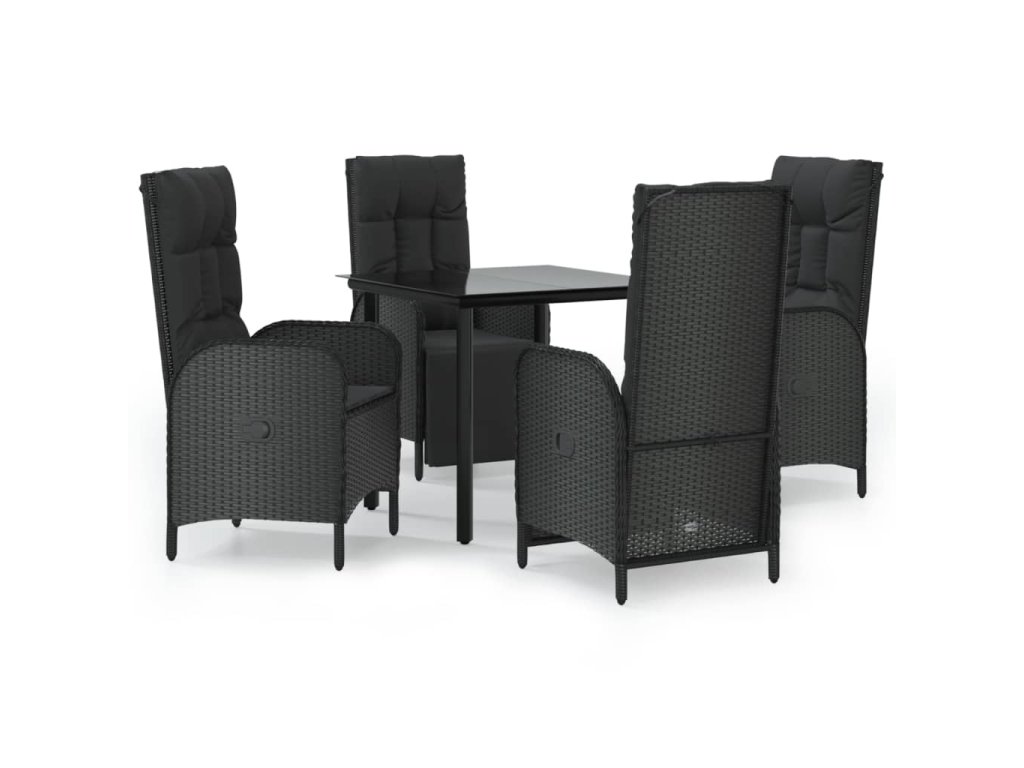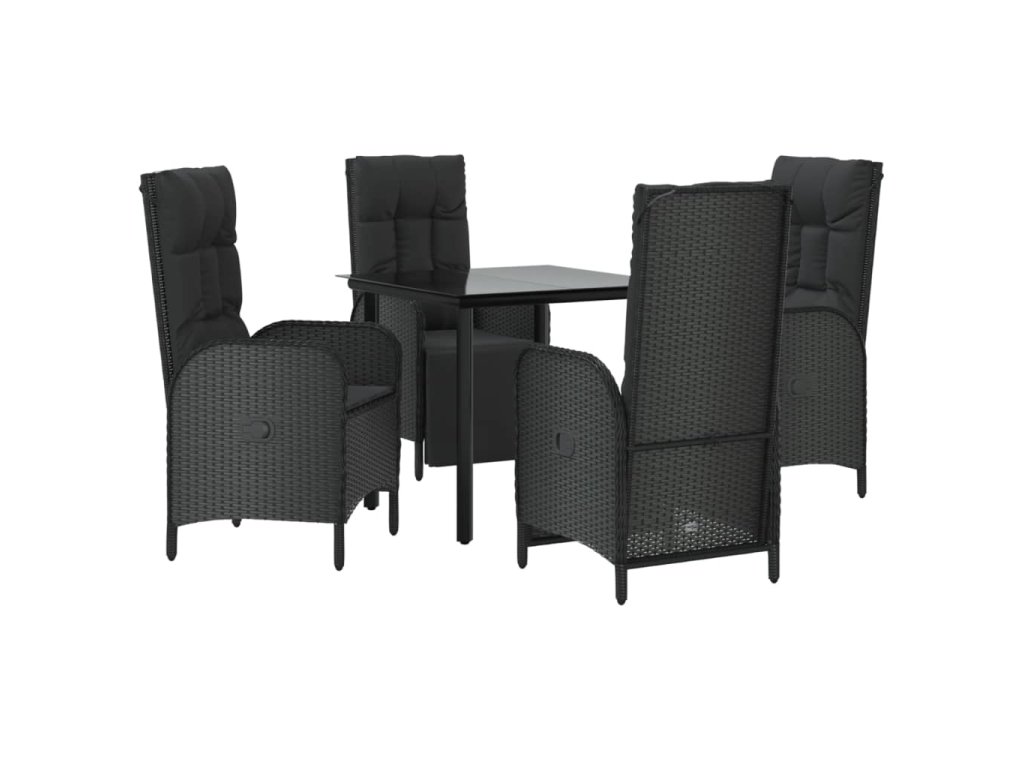 5dílný zahradní jídelní set s poduškami černý polyratan 3185195