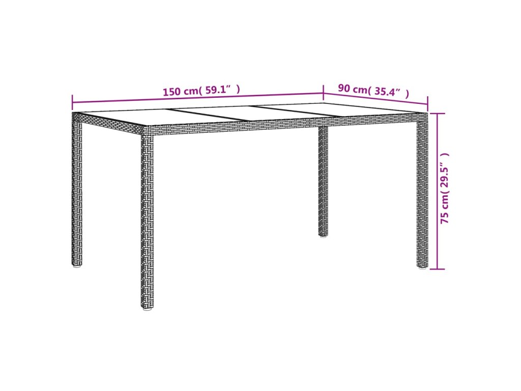- Materiál: polyratan, práškově lakovaná ocel, tvrzené sklo