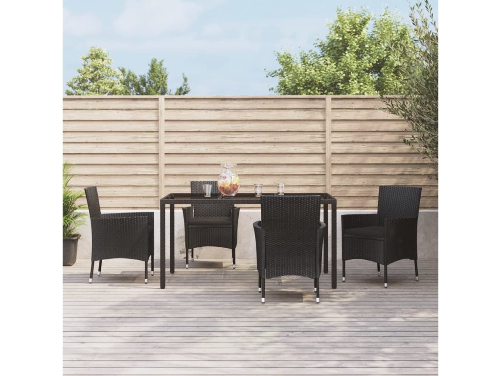 5dílný zahradní jídelní set s poduškami černý polyratan 3187326