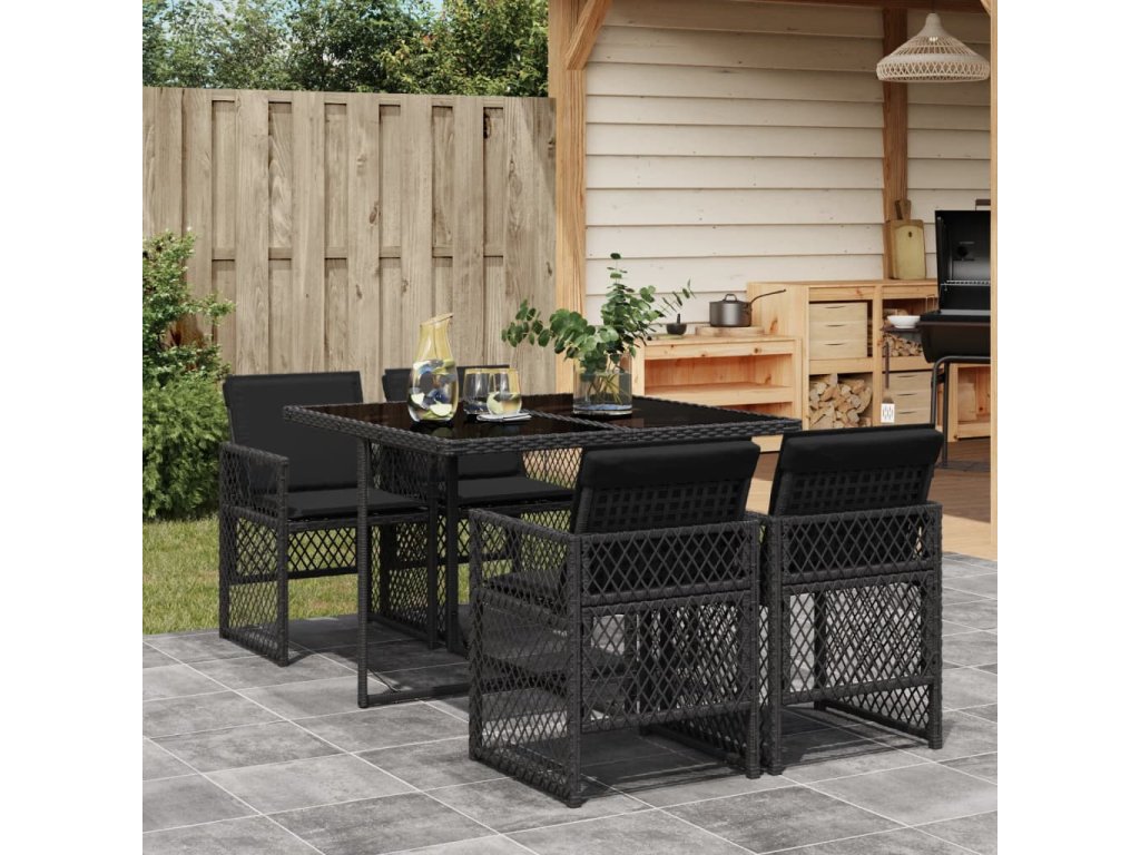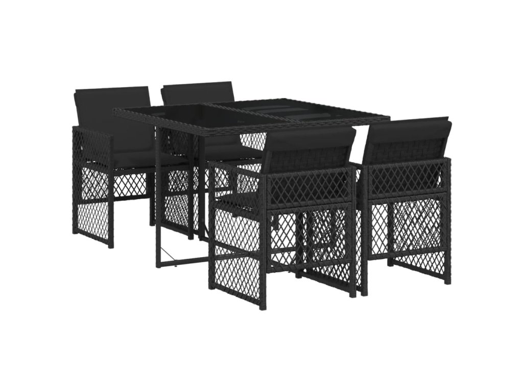 5dílný zahradní jídelní set s poduškami černý polyratan 3210715