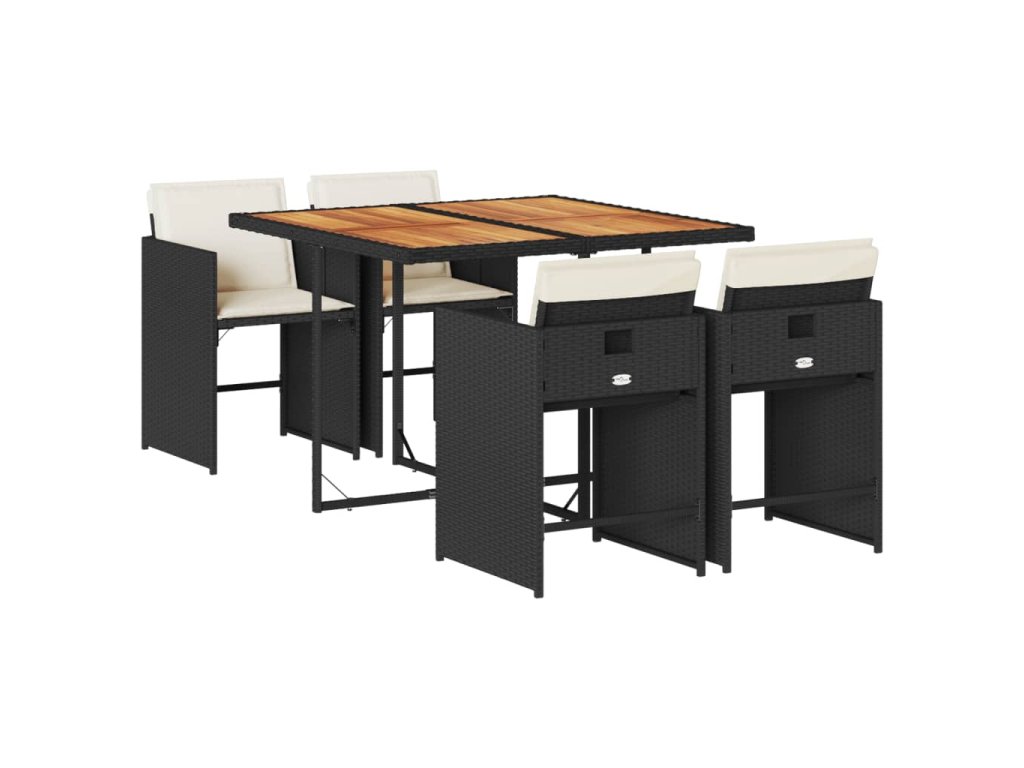 5dílný zahradní jídelní set s poduškami černý polyratan 3211083
