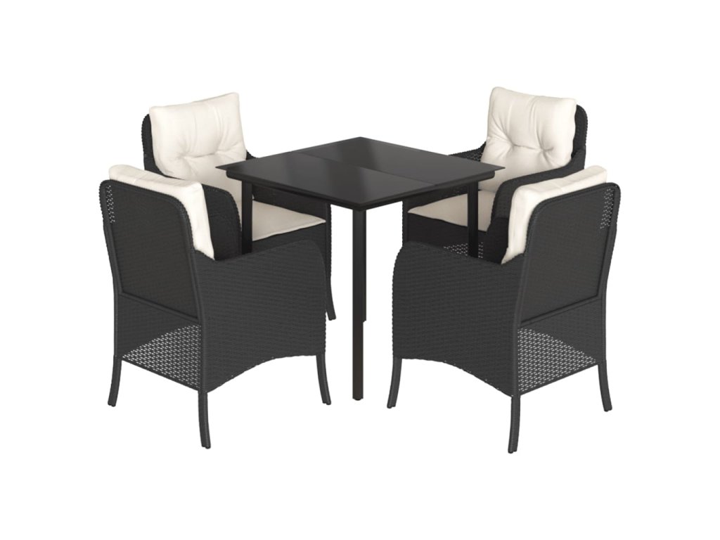 5dílný zahradní jídelní set s poduškami černý polyratan 3211914