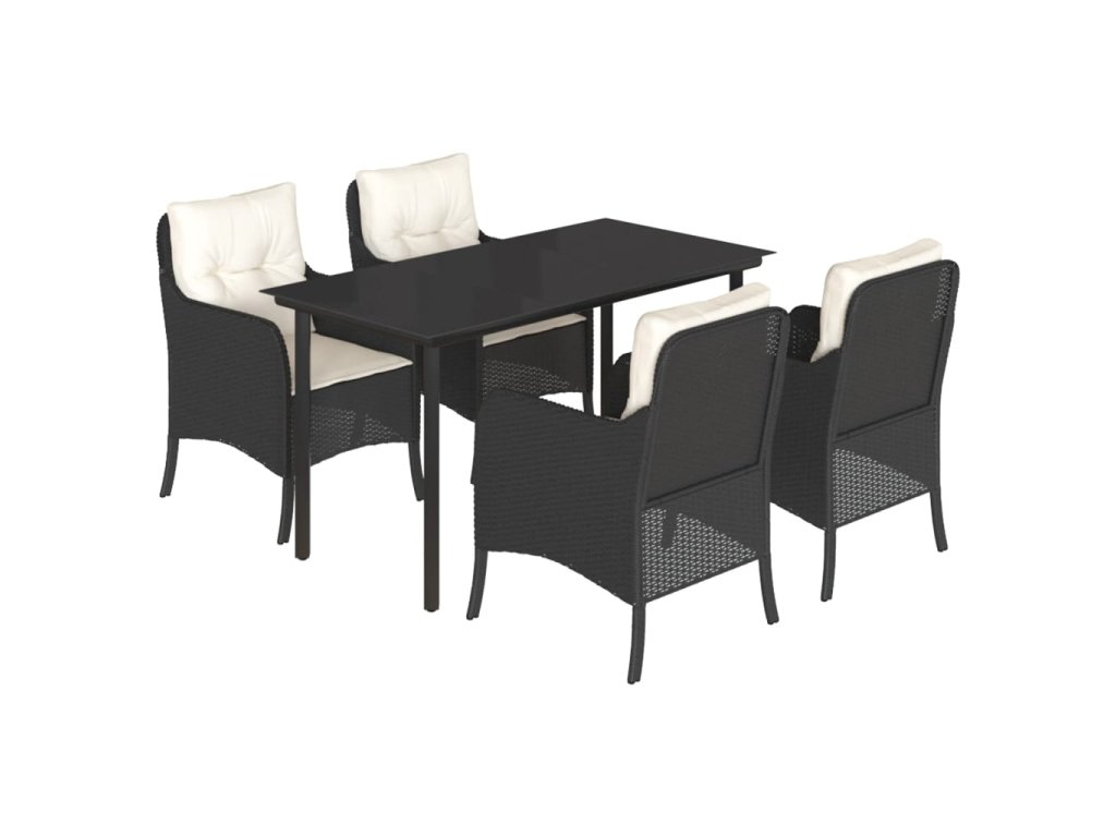 5dílný zahradní jídelní set s poduškami černý polyratan 3211915