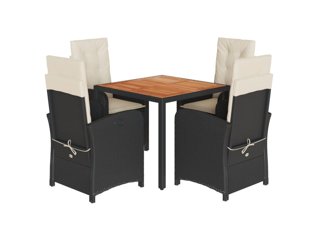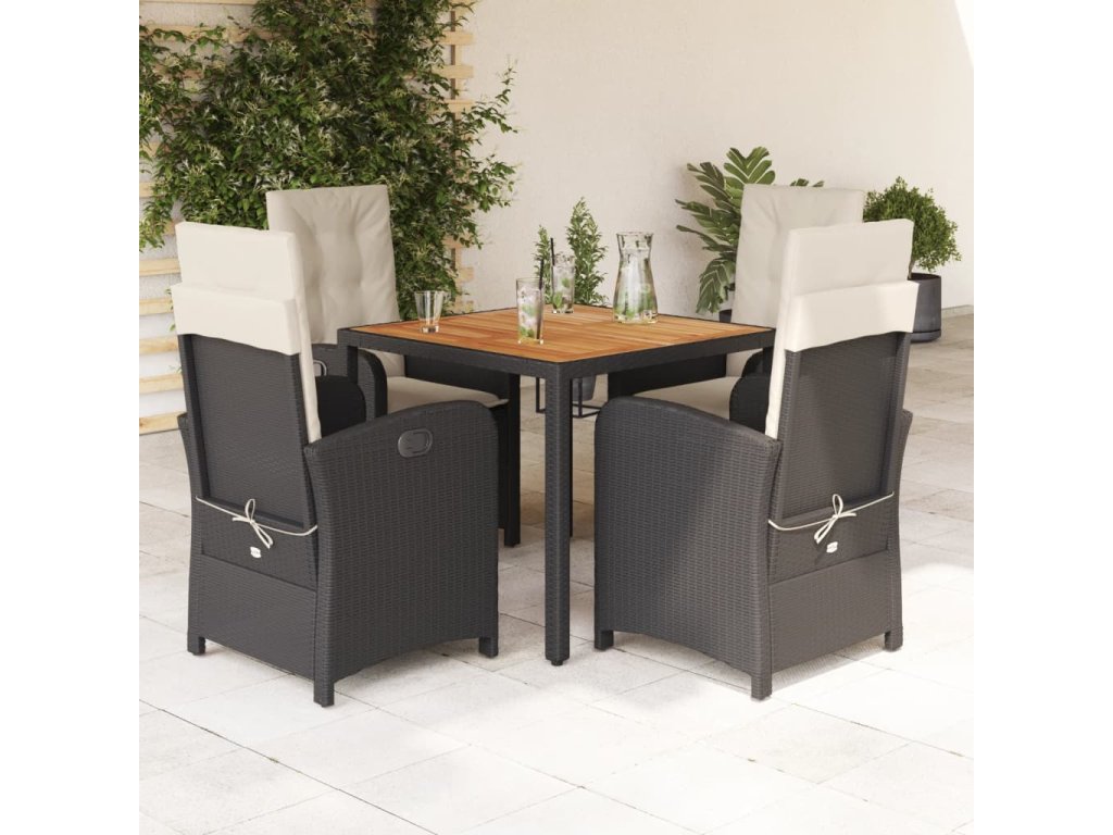 5dílný zahradní jídelní set s poduškami černý polyratan 3212222