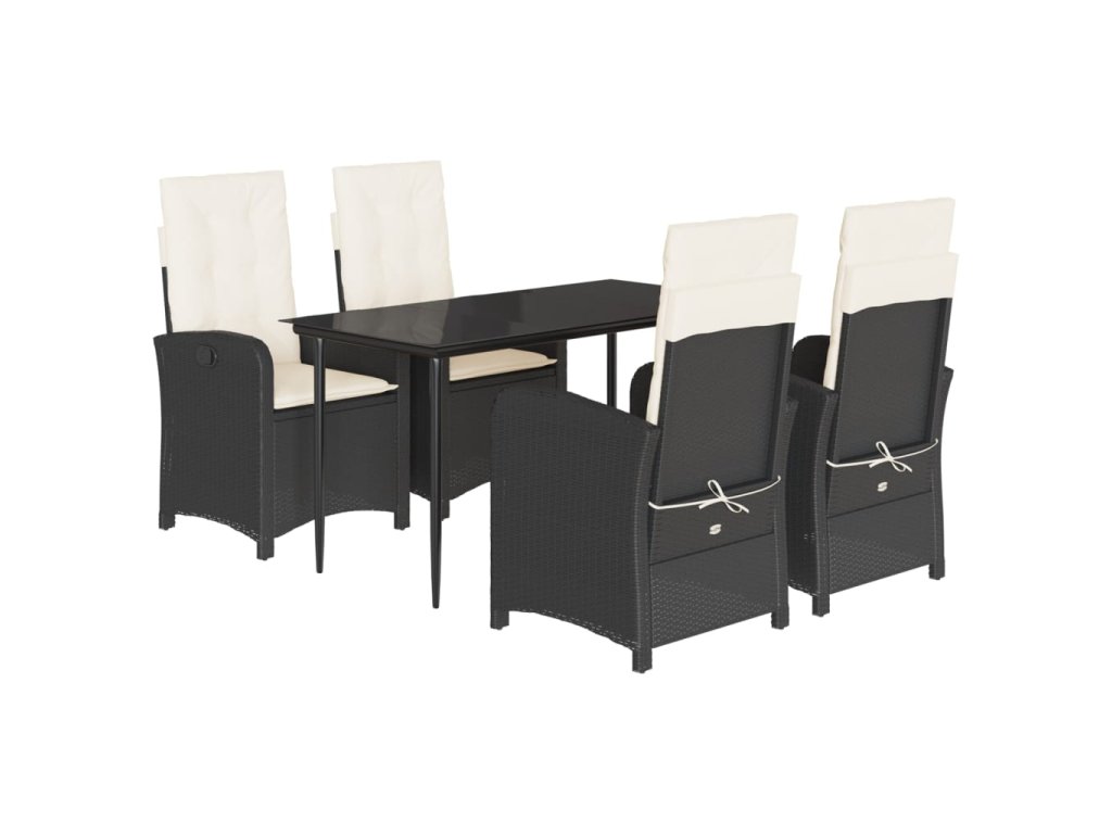 5dílný zahradní jídelní set s poduškami černý polyratan 3212293