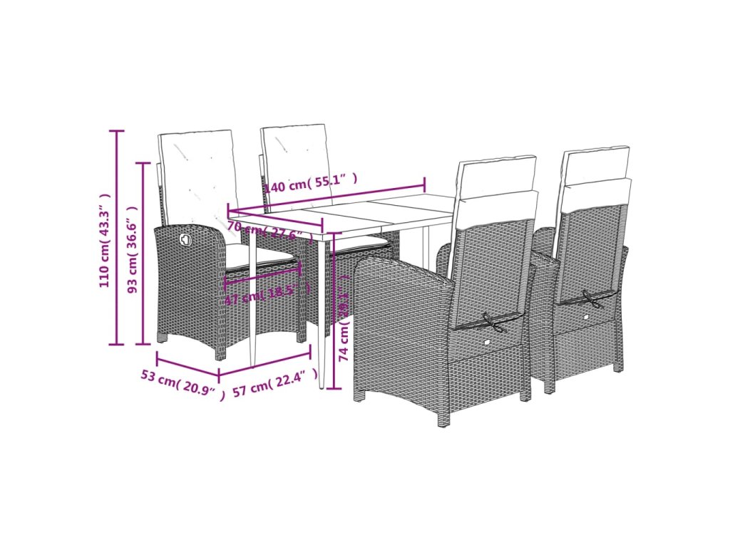 Tento zahradní jídelní set je skvělou volbou pro stolování pod širým nebem nebo jen tak pro odpočívání na zahradě, dvorku či terase.
