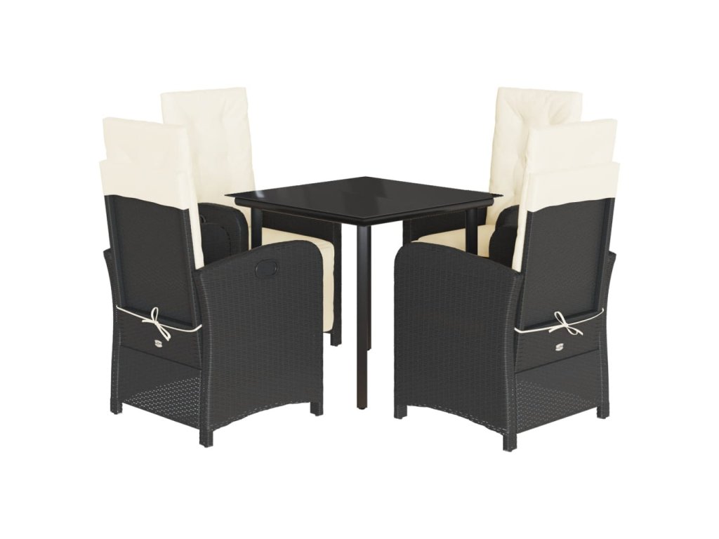 5dílný zahradní jídelní set s poduškami černý polyratan 3212302