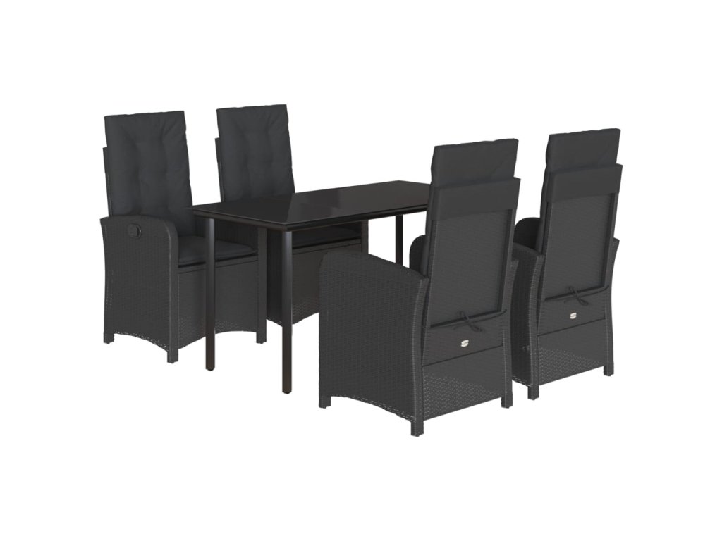 5dílný zahradní jídelní set s poduškami černý polyratan 3212323
