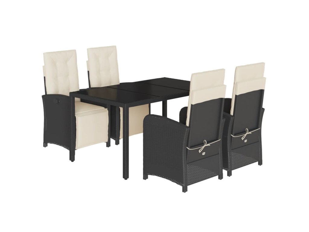 5dílný zahradní jídelní set s poduškami černý polyratan 3212452