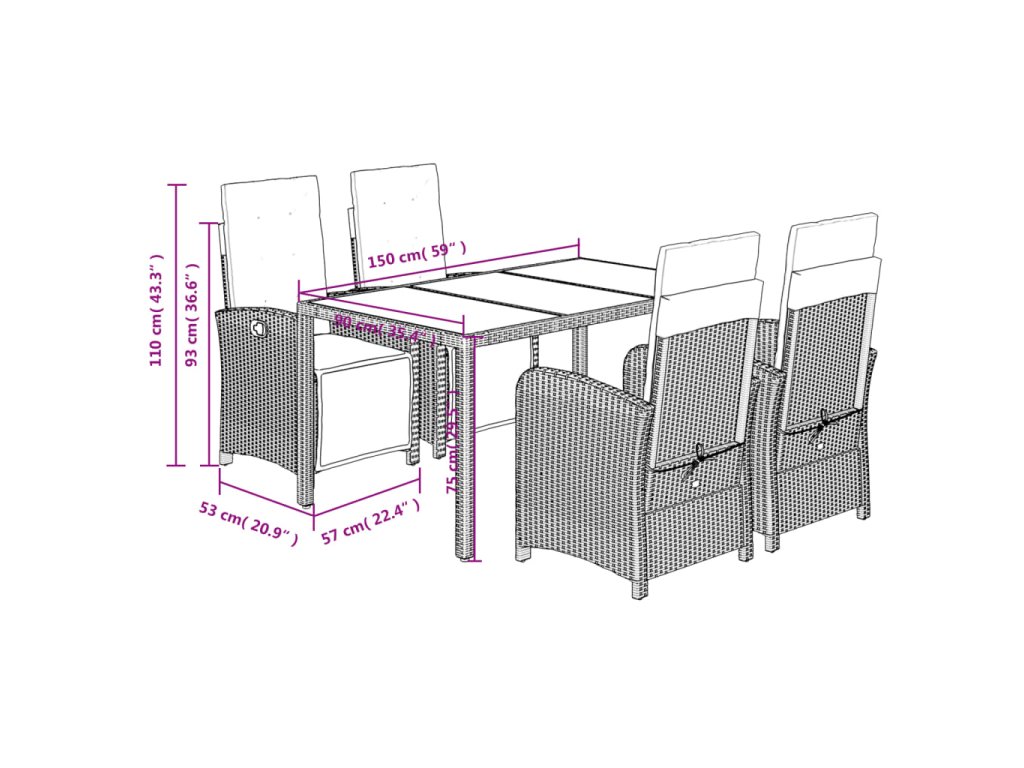 - Skleněná deska stolu: Deska venkovního stolu je zhotovena ze silného a odolného tvrzeného skla, takže ji snadno očistíte vlhkým hadříkem a zároveň do vašeho venkovního prostoru vnese nádech elegance.