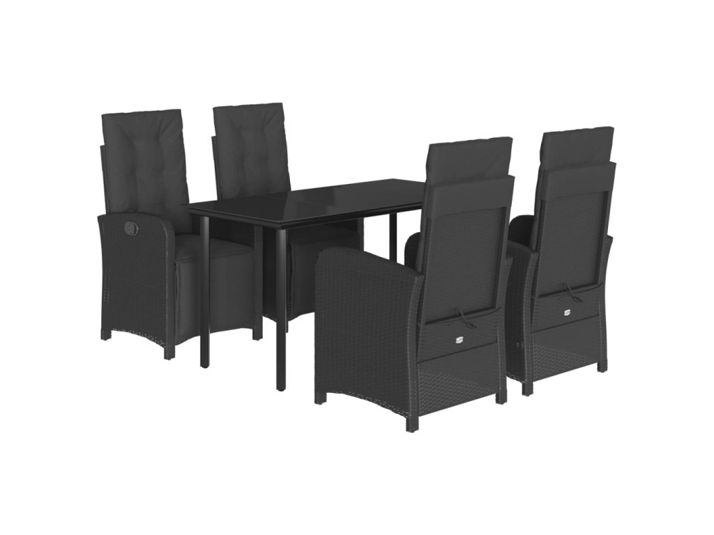 5dílný zahradní jídelní set s poduškami černý polyratan 3212537