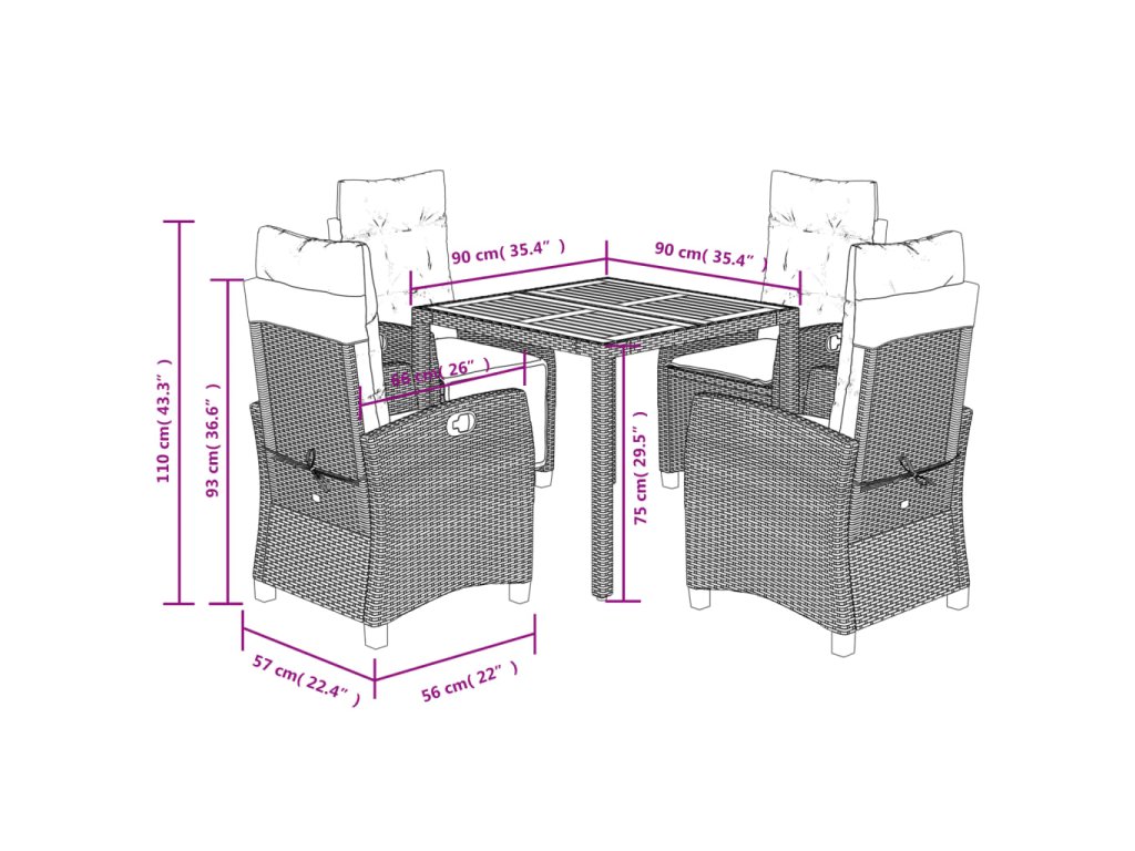 - Materiál: PE ratan, práškově lakovaná ocel, masivní akáciové dřevo s olejovou povrchovou úpravou