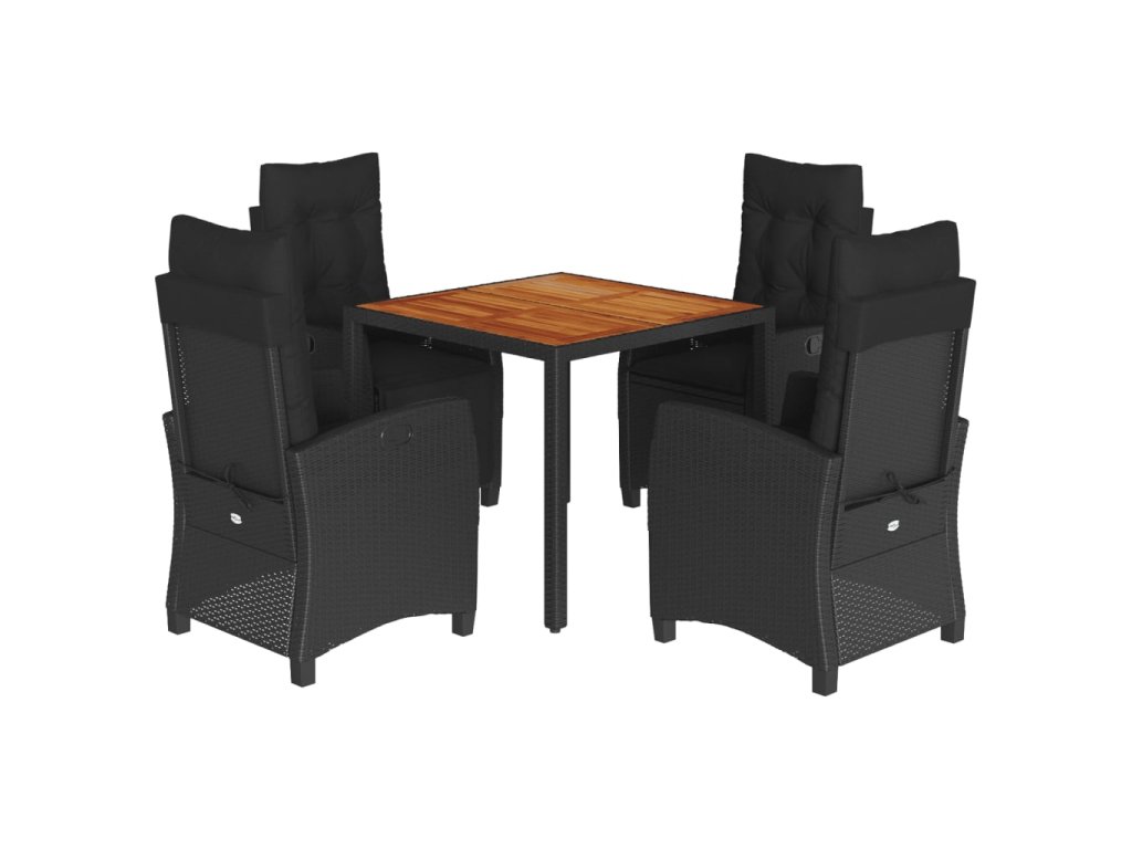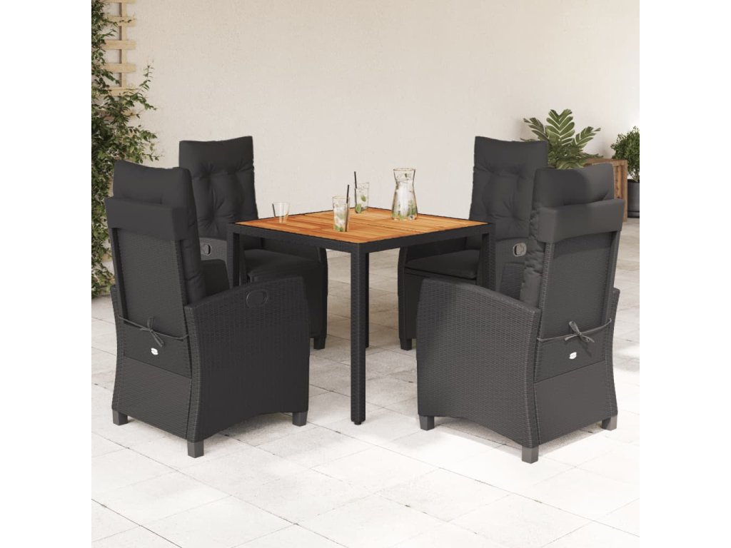 5dílný zahradní jídelní set s poduškami černý polyratan 3212664
