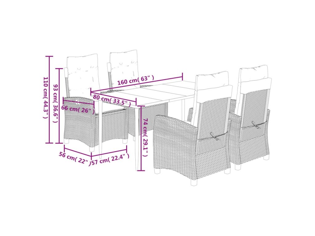 5dílný zahradní jídelní set s poduškami černý polyratan 3212726