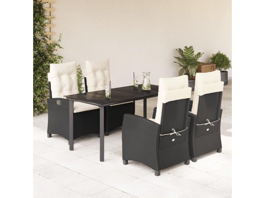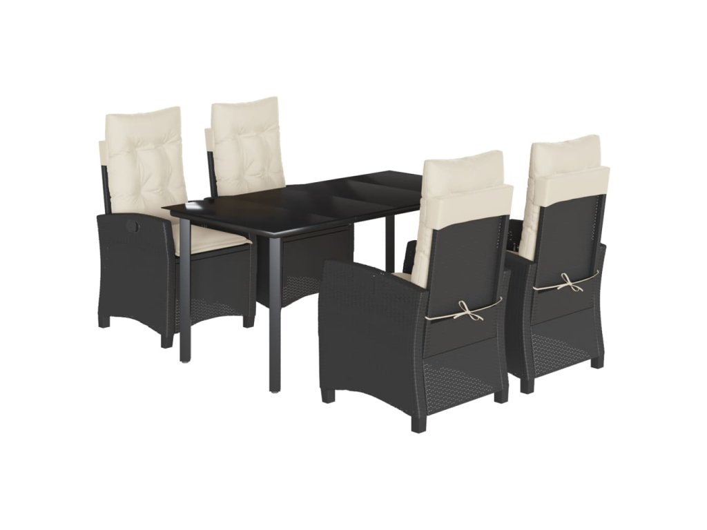 5dílný zahradní jídelní set s poduškami černý polyratan 3212736