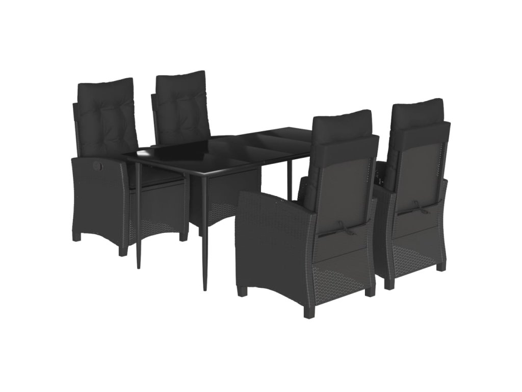 5dílný zahradní jídelní set s poduškami černý polyratan 3212746