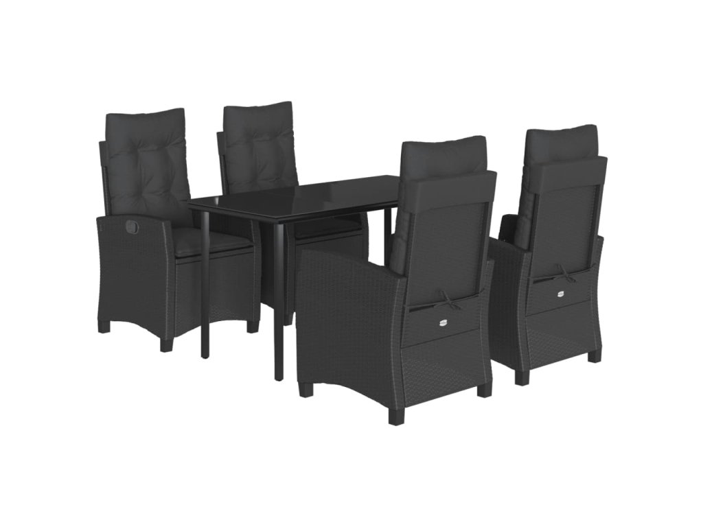5dílný zahradní jídelní set s poduškami černý polyratan 3212755