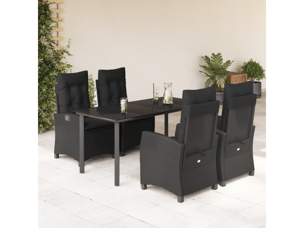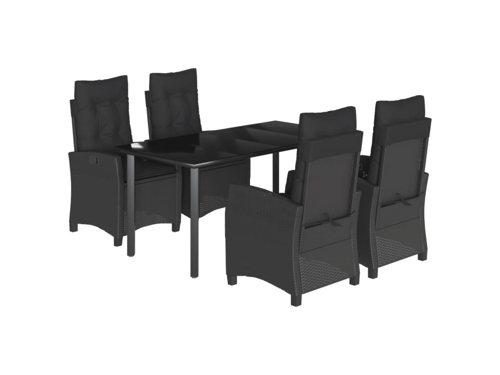 5dílný zahradní jídelní set s poduškami černý polyratan 3212756