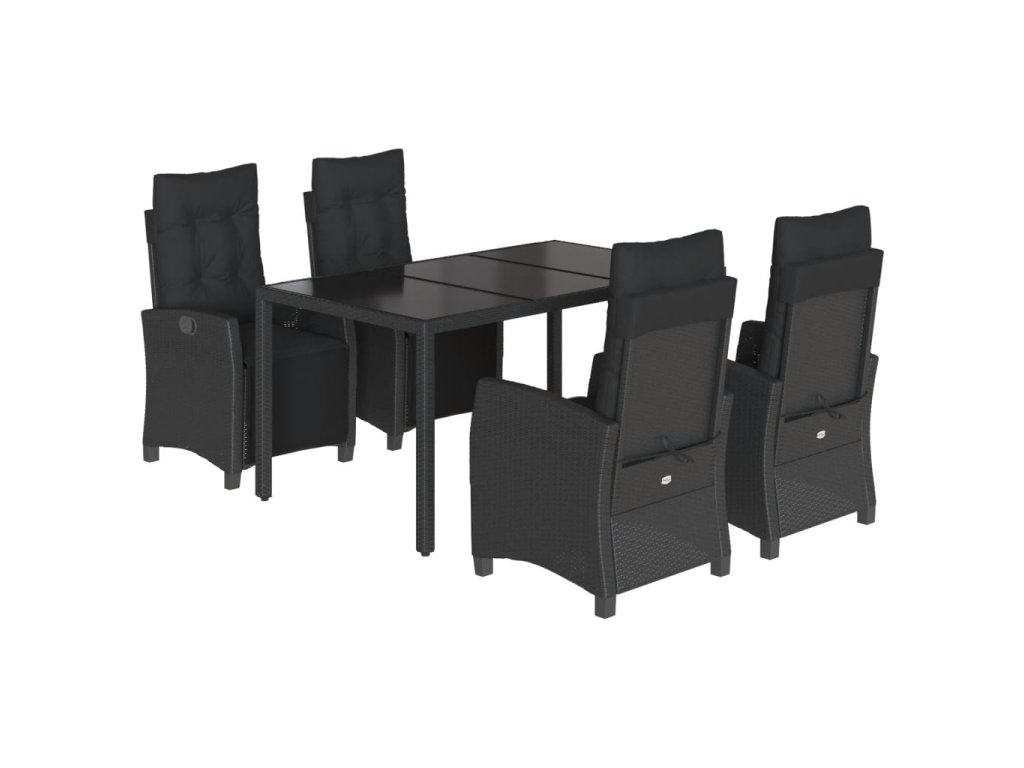 5dílný zahradní jídelní set s poduškami černý polyratan 3212890