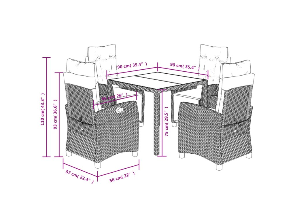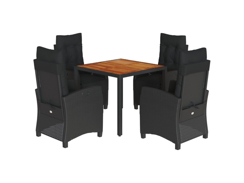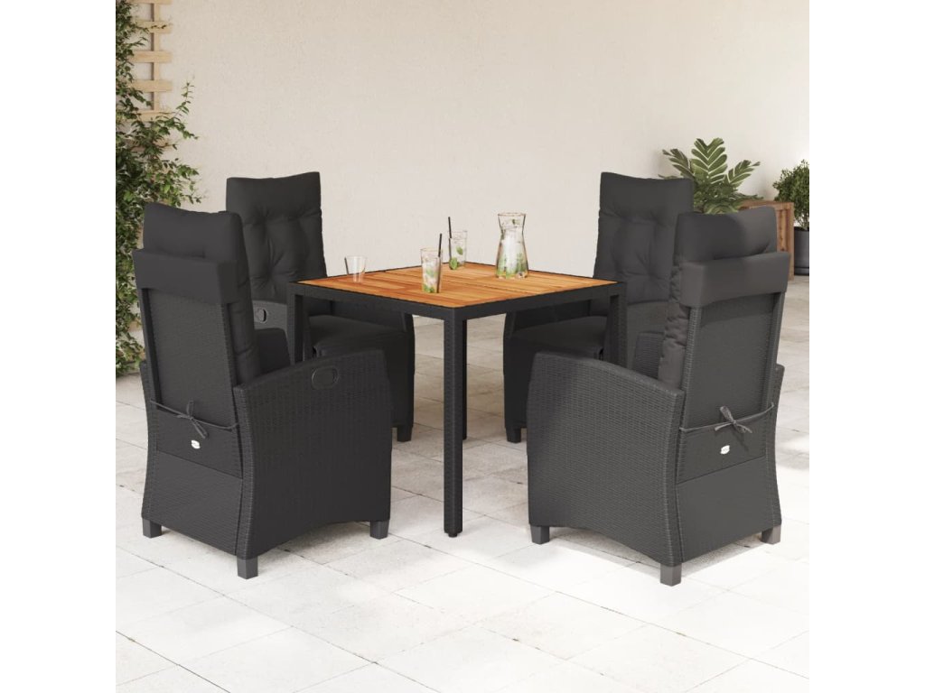 5dílný zahradní jídelní set s poduškami černý polyratan 3212907