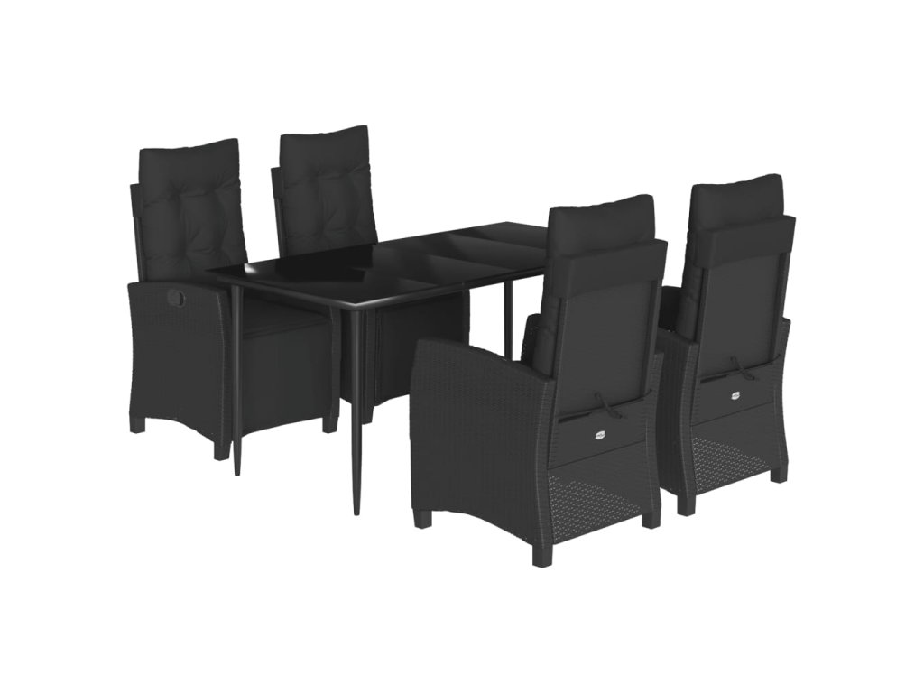 5dílný zahradní jídelní set s poduškami černý polyratan 3212963